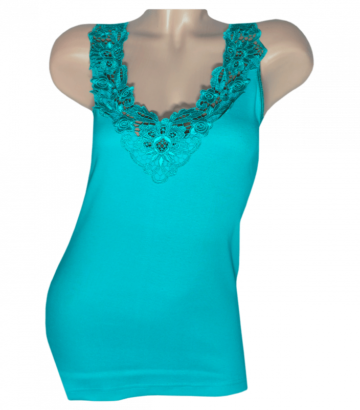 Майка жіноча на широких бретельках спереду кружево.