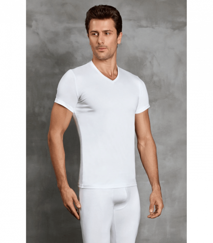 Чоловіча термофутболка з короткими рукавами і V-подібним вирізом горловини.