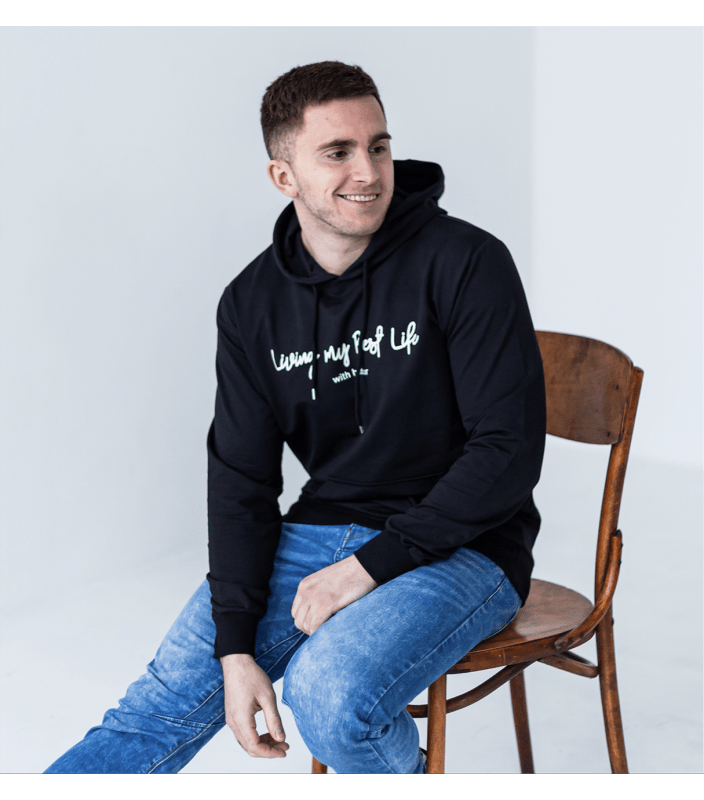 Стильна толстовка худі LIVING MY BEST LIFE гармонійно впишеться в повсякденний спорт-шик гардероб активного чоловіка. Модель напівприталеного крою забезпечує повну свободу рухів.