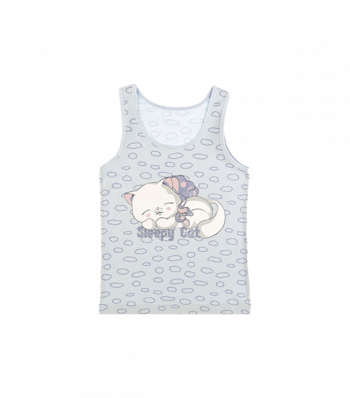 Дитяча майка для дівчаток на широких бретелях, з малюнком кота.