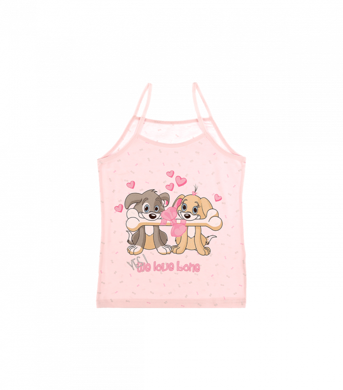 Дитяча майка для дівчаток на тонких бретелях, з малюнком собачки.