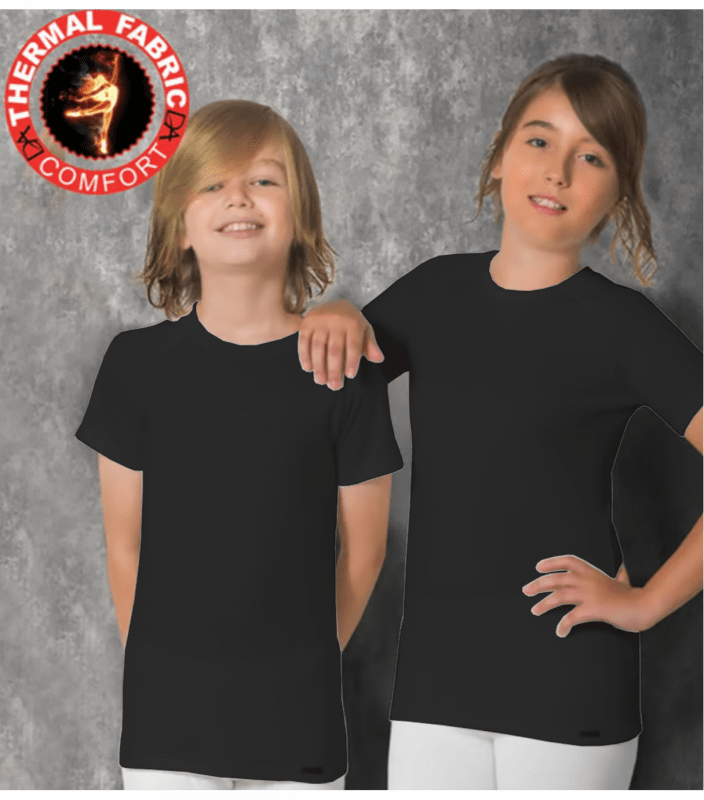 Дитяча термофутболка з короткими рукавами і круглим вирізом горловини.