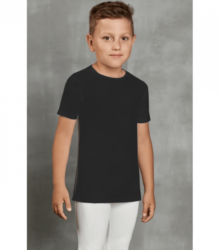 Дитяча термофутболка з короткими рукавами і круглим вирізом горловини.