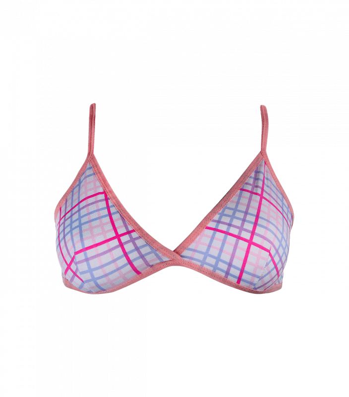 Бюстгальтер тканинний з малюнком в клітинку, на тонких бретельках з трикутними чашечками.