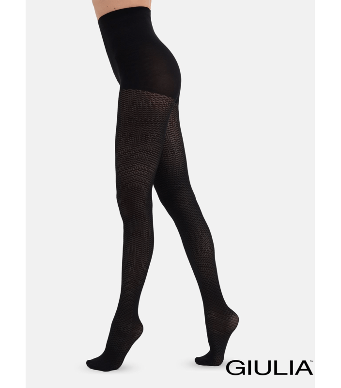 GIULIA Inlay 60 model 8 - модні жіночі колготки щільністю 60 Den з візерунком у дрібну сіточку. Комфортний пояс, плоскі шви, бавовняна ластка і ущільнені миски.
