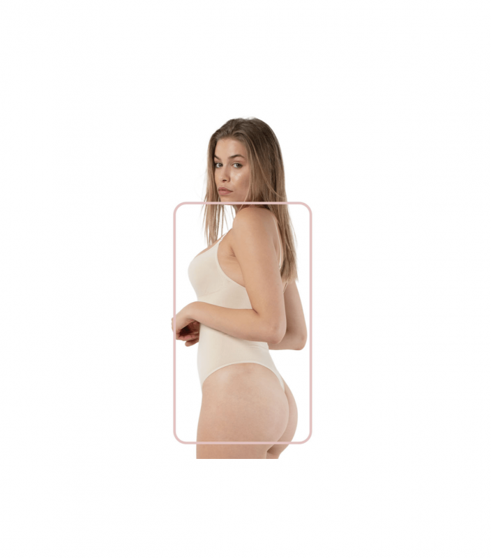 Коригувальне боді з трусиками-стрінги. Чудово сідає по фігурі, моделюючи її. Знімні бретелі, регулюються по довжині.