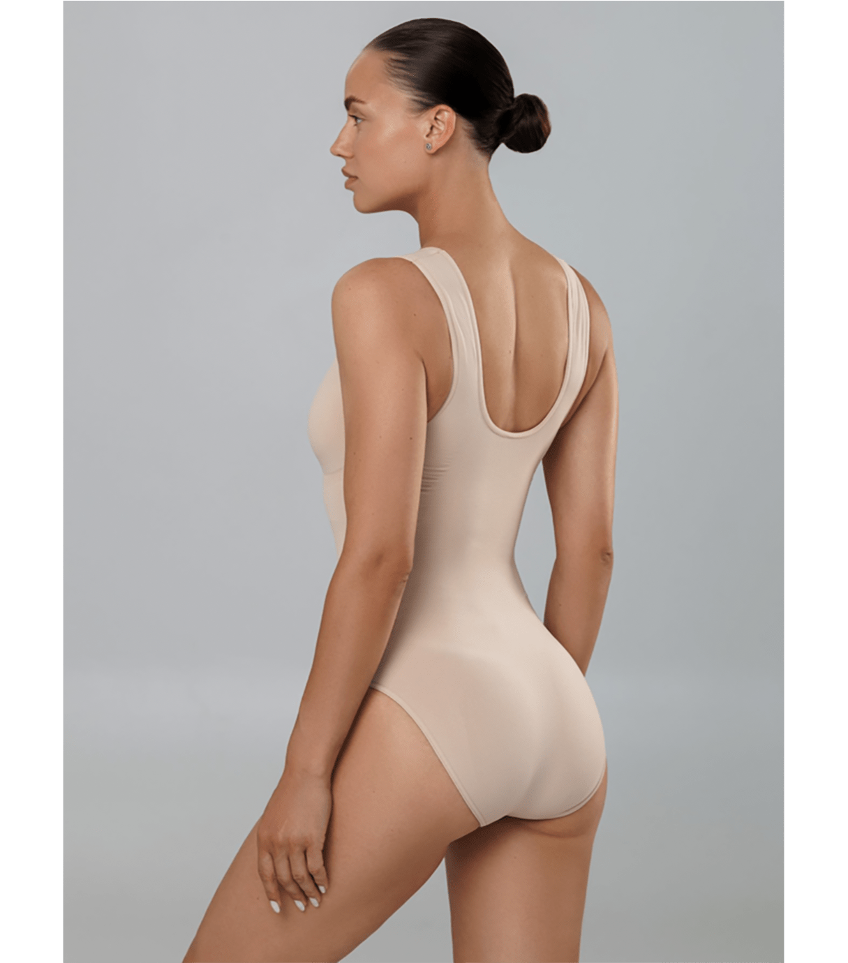 Коригуюче боді з трусиками сліпами на кнопках та широкими бретелями.