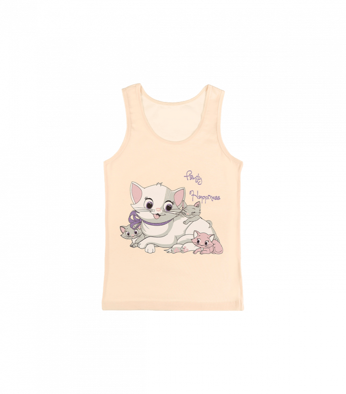 Майка на широких бретелях для дівчаток з принтом Кошенята