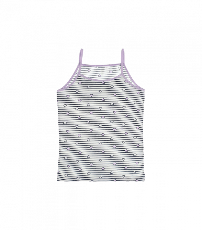 Майка на тонких бретельках для дівчинки в горизонтальну полоску з сердечками.