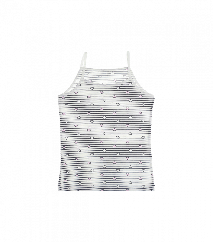 Майка на тонких бретельках для дівчинки в горизонтальну полоску з сердечками.
