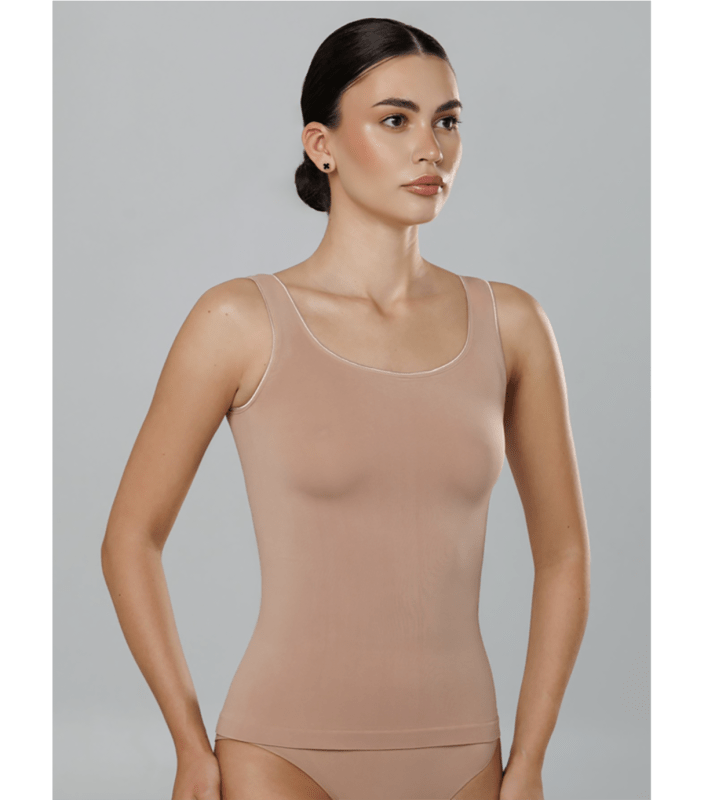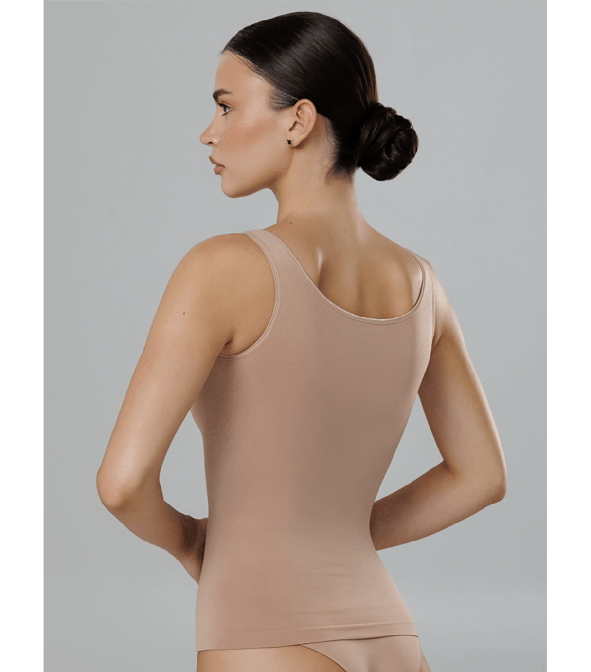 Майка з широкими бретелями із мікрофібри та декоративним кантом.