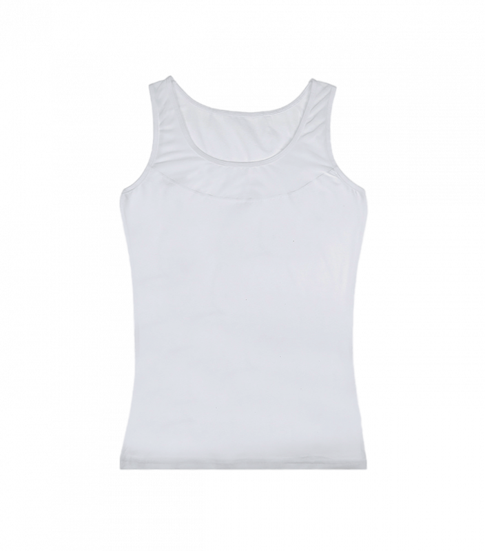 Майка жіноча на широких бретельках, прикрашена U-подібною прозорою вставкою.