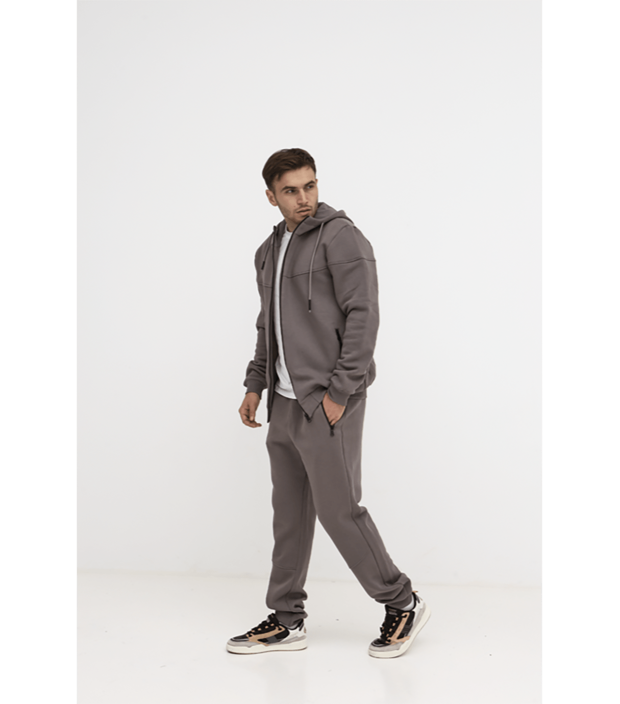 Теплий універсальний чоловічий спортивний костюм великих розмірів підкорить кожного мужчину модним фасоном та універсальними відтінками. З таким теплим спортивним костюмом від виробника можна бути завжди готовим до неспішних прогулянок, і заміських поїздок в холодну пору. Комплект зі штанами та кофтою на замку пошитий із трикотажу тринитки з начосом. У штанах низ на манжеті, а пояс зібраний на резинці. Також штани мають функціональні кишені на застібках. У кофті каптур обшитий підкладкою, прямий низ та довгі рукави закінчуються манжетами. Спереду вгорі кофти горловина високого крою. Ти закохаєшся в тепло та затишок цього комплекту з першої примірки, оформлюй замовлення в нашому інтернет-магазині просто зараз!
