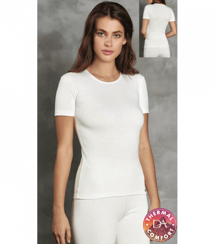 Жіноча термофутболка з коротким рукавом і круглим вирізом горловини.