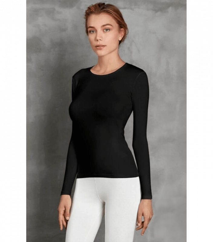 Жіноча термокофта з довгим рукавом і круглим вирізом горловини.