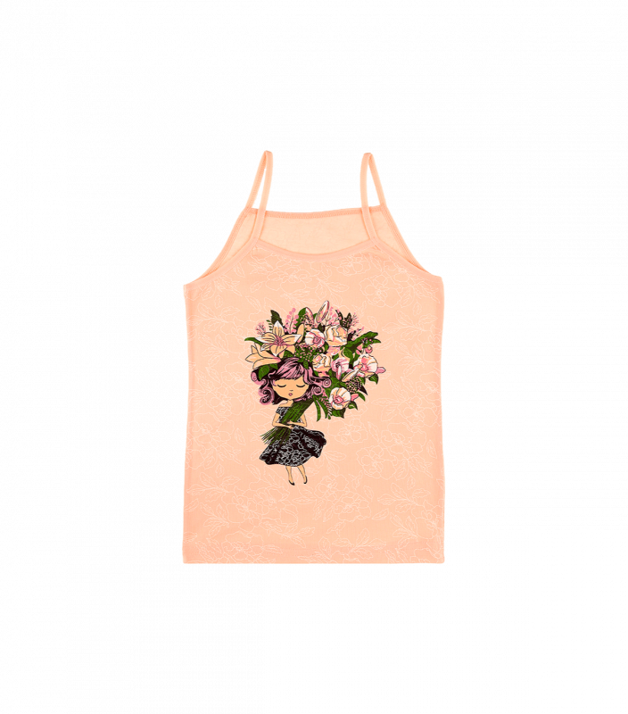 Детская майка для девочки с рисунком Девочки на тонких бретельках.