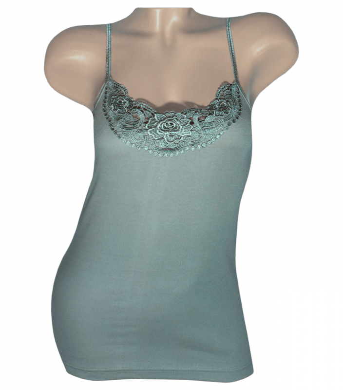 Майка женская на тонких бретельках по центру кружево.