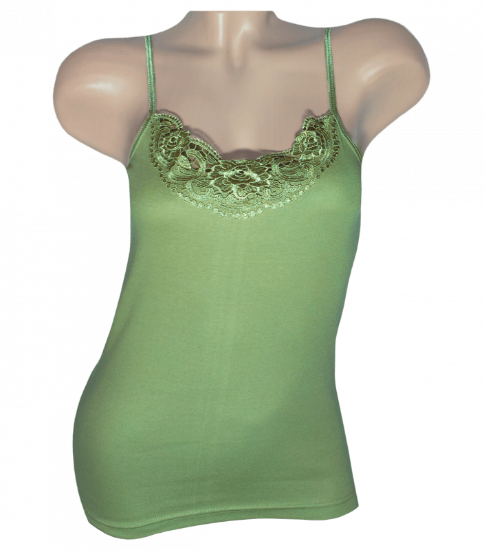 Майка женская на тонких бретельках по центру кружево.