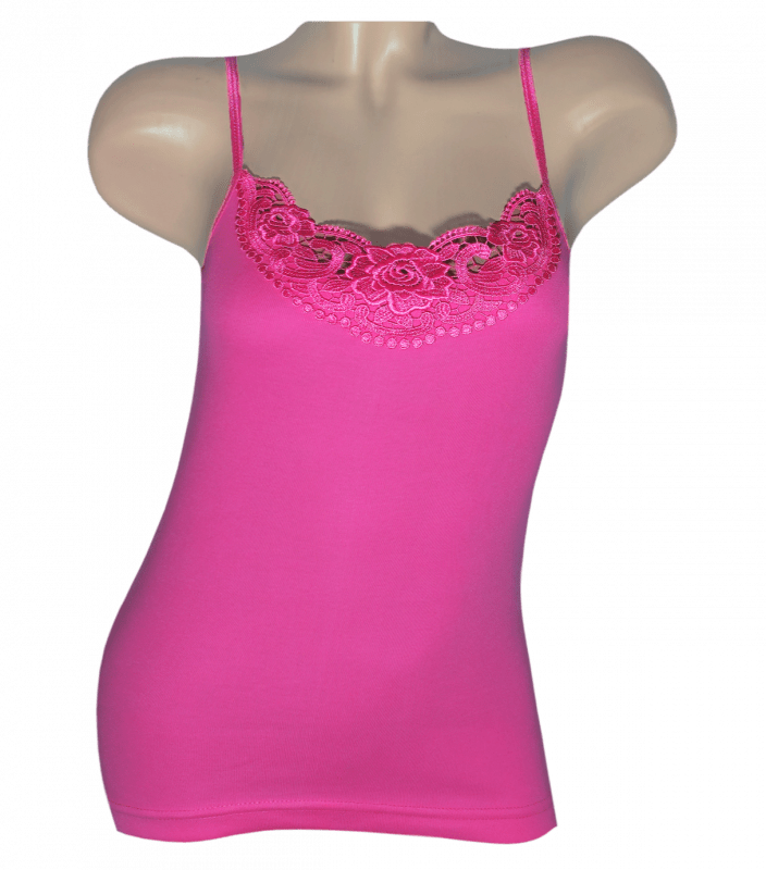 Майка женская на тонких бретельках по центру кружево.