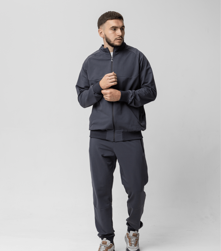 Этот костюм состоит из двух частей: кофты с застежкой по всей длине и брюк с ластичным поясом. Костюм без капюшона, что делает его идеальным для тренировок в помещении или на улице в теплую погоду.