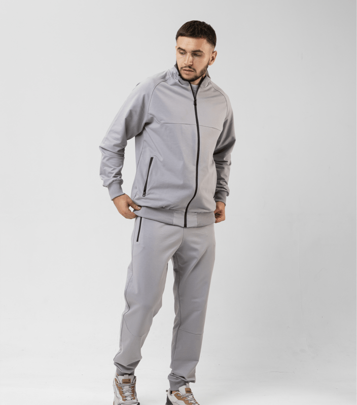 Этот костюм состоит из двух частей: кофты с застежкой по всей длине и брюк с ластичным поясом. Костюм без капюшона, что делает его идеальным для тренировок в помещении или на улице в теплую погоду.