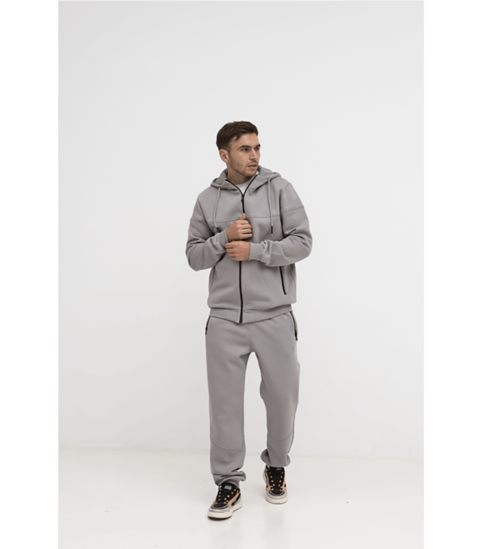 Теплый универсальный спортивный костюм больших размеров покорит каждого мужчину модным фасоном и универсальными оттенками. С таким теплым спортивным костюмом от производителя можно быть всегда готовым к неспешным прогулкам и загородным поездкам в холодное время. Комплект с брюками и кофтой на замке сшит из трикотажа тринитки с начесом. В брюках низ на манжете, а пояс собран на резинке. Также брюки имеют функциональные карманы на застежках. В кофте капюшон обшит подкладкой, прямой низ и длинные рукава заканчиваются манжетами. Впереди кофты горловина высокого кроя. Ты влюбишься в тепло и уют этого комплекта из первой примерки, оформляй заказ в нашем интернет-магазине прямо сейчас!