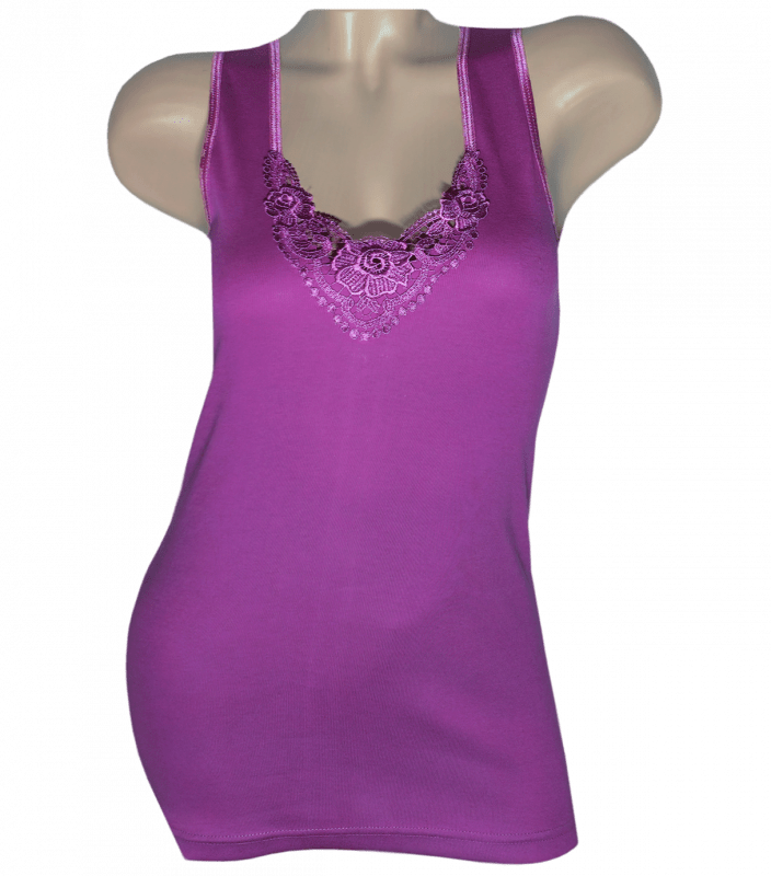 Майка женская на широких бретельках спереди кружево.