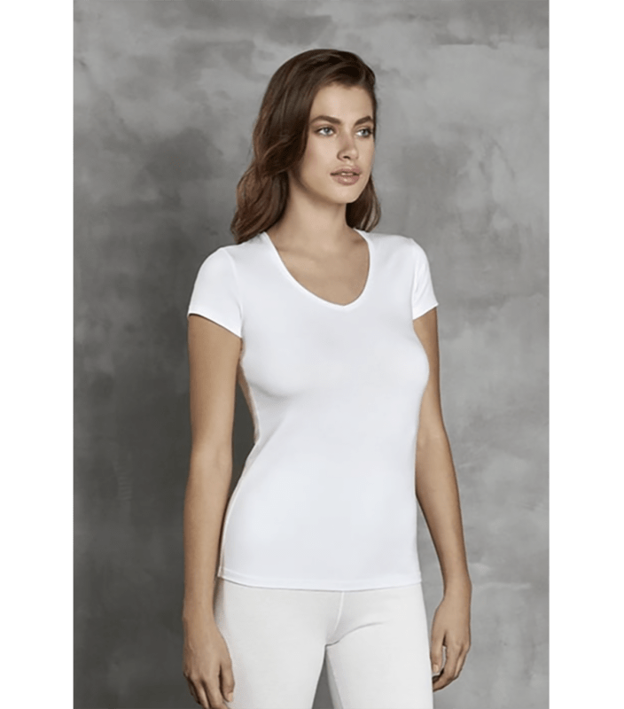 Женская термофутболка с коротким рукавом и круглым вырезом горловины.