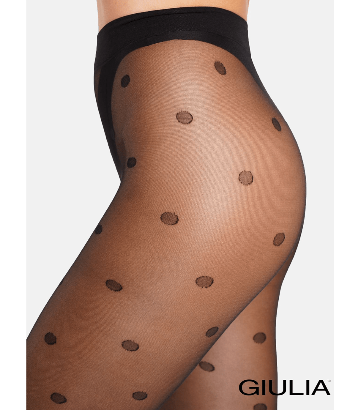 Фантазийные колготки GIULIA Amalia 20 model 11 плотностью 20 ден, шелковистые в крупный горох по всей длине ноги. Колготки без шортиков с хлопчатобумажной ластовицы, плоским швом, усиленным носком и комфортным поясом.